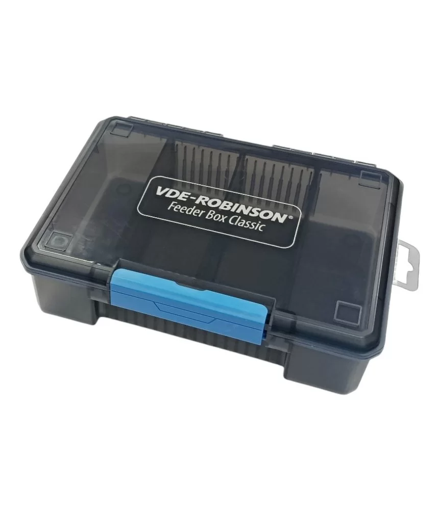 VDE Robinson Organizer Feeder Box Classic – tai praktiškas sprendimas visiems feeder žvejybos entuziastams, siekiantiems palaikyti tvarką savo įrangoje. Dėžutė sukurta taip, kad būtų galima patogiai ir saugiai laikyti įvairius smulkius priedus, tokius kaip šėryklėlės, kabliukai ar kiti aksesuarai.