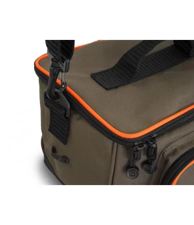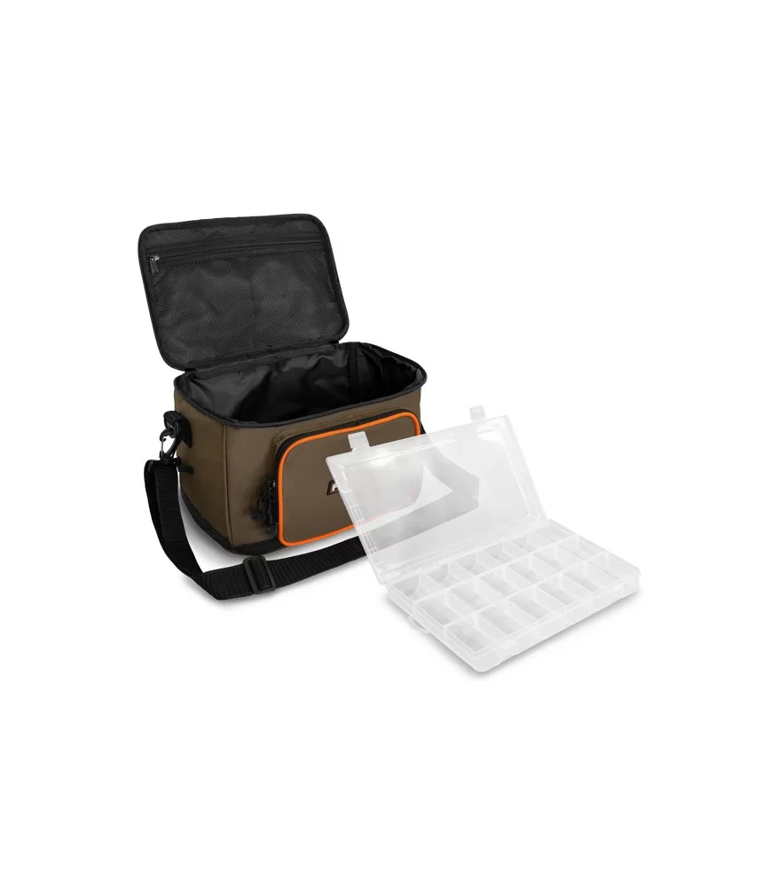 Kompaktiška ir praktiška žvejybinė rankinė su masalų dėžute – puikiai tinka spiningavimui, feeder ar plūdinei žūklei.