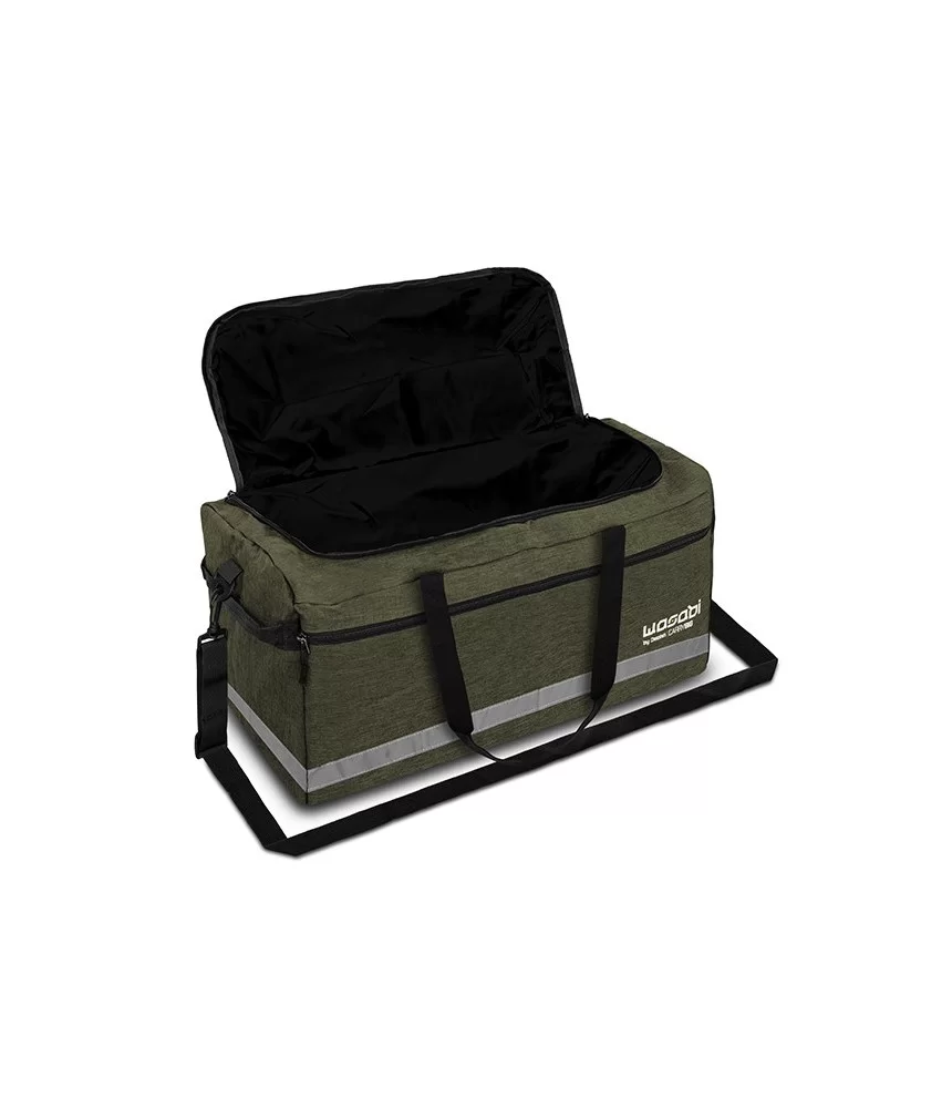 Apatinėje dalyje esanti šviesą atspindinti juostelė pagerina matomumą prieblandoje ar naktį – tai ne tik praktiška, bet ir saugu. Žalia ir juoda spalvų kombinacija dera su kitais WASABI serijos produktais, tad jūsų įranga atrodys nuosekliai ir tvarkingai.