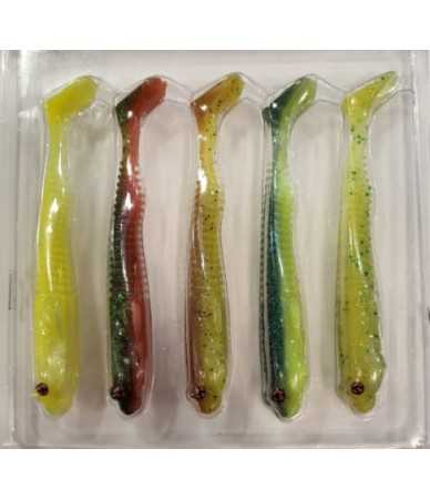 Gobygo Swimbait Shad, dydis 105mm: viename rinkinyje yra 5 skirtingų spalvų silikoniniai masalai