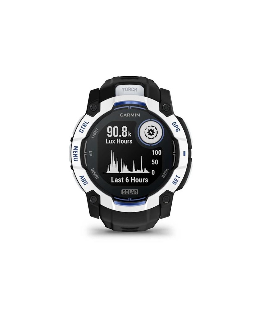 Instinct 3 – 50 mm Solar Supernova collection Whitestone and bolt blue silicone band