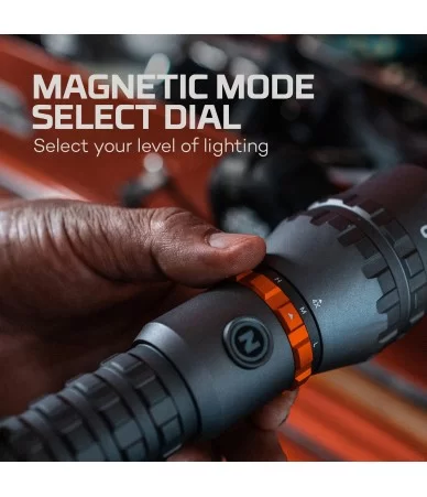 4 kartus reguliuojamas priartinimas (zoom) leidžia tiksliai pritaikyti šviesos spindulį pagal jūsų poreikius – nuo plataus šviesos lauko iki taškinio apšvietimo. Magnetinis režimų pasirinkimo ratukas leidžia greitai ir intuityviai valdyti šviesos srautą net dėvint pirštines.