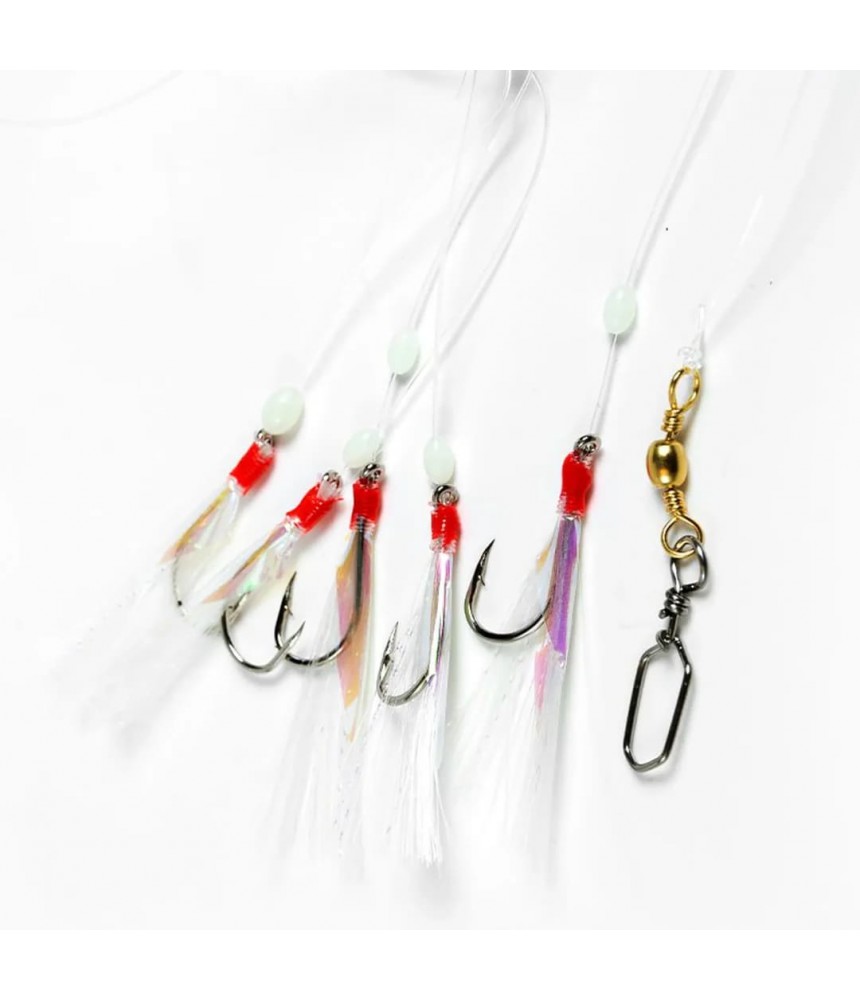 Galinga ir ryški sistemėlė stambesnių jūrinių žuvų žūklei – balta spalva, švytintys karoliukai ir blizgūs akcentai garantuoja dėmesį po vandeniu.
