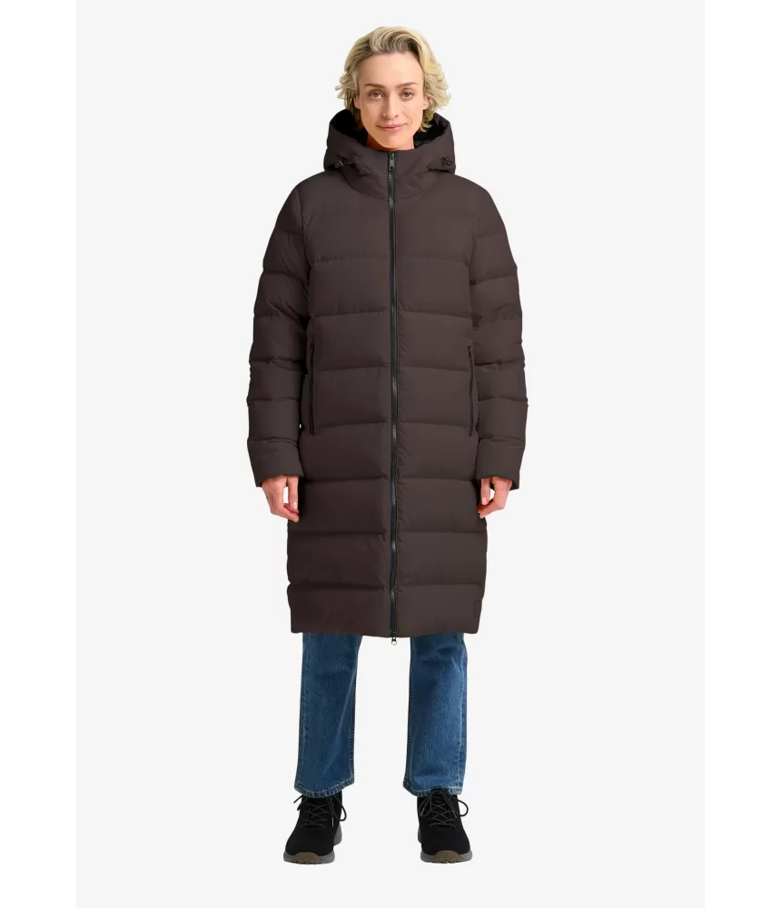 FROZEN PALACE COAT – elegantiška ir šilta moteriška žieminė striukė su 700 cuin RDS pūkų užpildymu ir TEXASHIELD audiniu. Pailgintas modelis, kuris užtikrina šilumą, apsaugą nuo vėjo ir madingą išvaizdą žiemai.