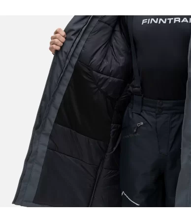Ilgesnė nugara, laisvesnė pečių linija ir šoninės užtrauktukų angos užtikrina patogumą sėdint ar judant. Reguliuojamos rankogalių Velcro juostos, elastiniai vidiniai rankogaliai su nykščio kilpa padeda išlaikyti šilumą. Dviejų krypčių centrinis užtrauktukas su dviguba audros apsauga apsaugo nuo vėjo.