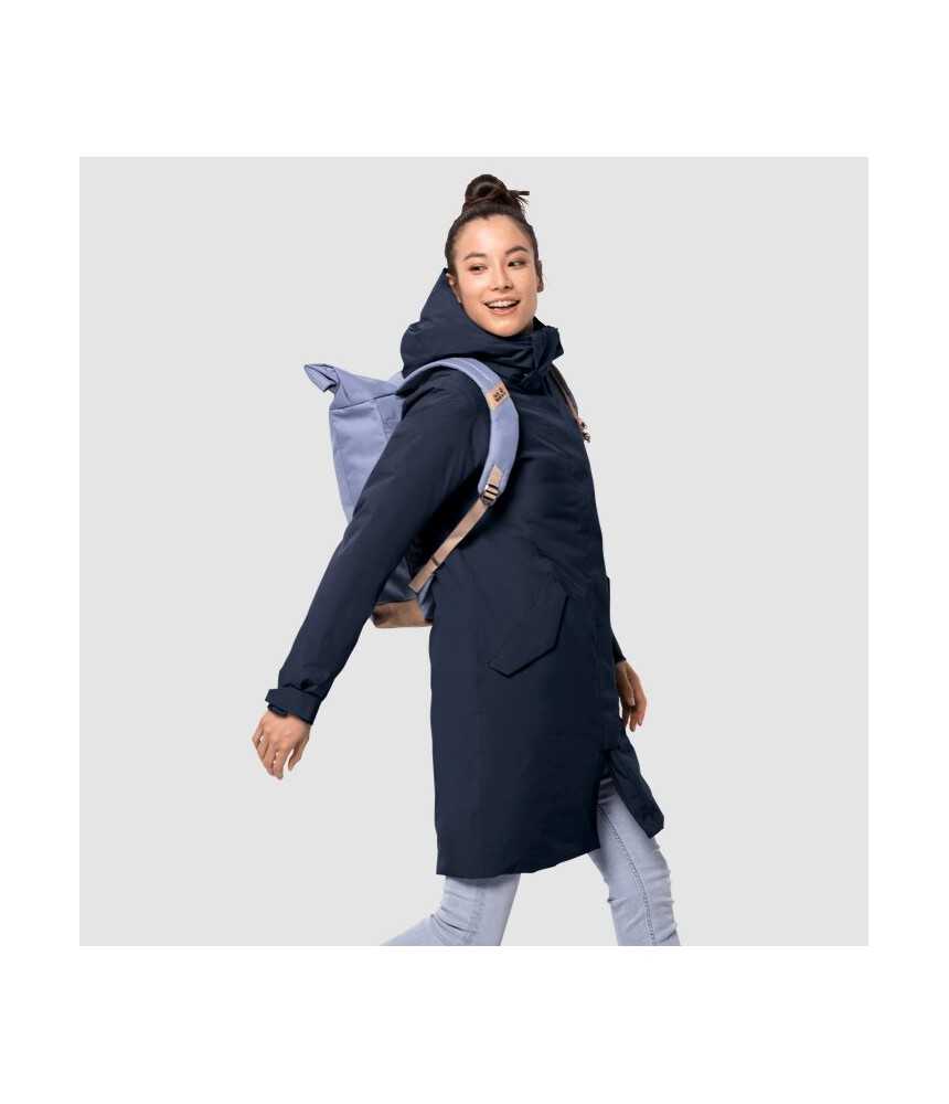 Norint patogiai ir šiltai laiką leisti lauke jums tikrai pravers moteriškas paltas Jack Wolfskin Madison Avenue. Nei šaltas oras, nei lietus jums netrukdys, nes TEXAPORE išorinis audinys yra atsparus vandeniui (ir išgarinantis drėgmę). Todėl šis žieminis moteriškas paltas taps puikiu pasirinkimu. Tarp išorinio Texapore sluoksnio ir švelnaus taftos pamušalo yra šiltas sintetinio pluošto užpildas. Užpildas nėra veikiamas drėgmės ir išlaiko optimalią kūno šilumą. Moteriškas paltas taip pat turi minkštą, aukštą vilnos pamušalą pečių, apykaklės ir gobtuvo srityse. Nuimamas, reguliuojamo dydžio gobtuvas, 2 krypčių YKK Vislon priekinis užtrauktukas ir elastingas užtrauktukas ties juosmeniu yra papildomi privalumai.