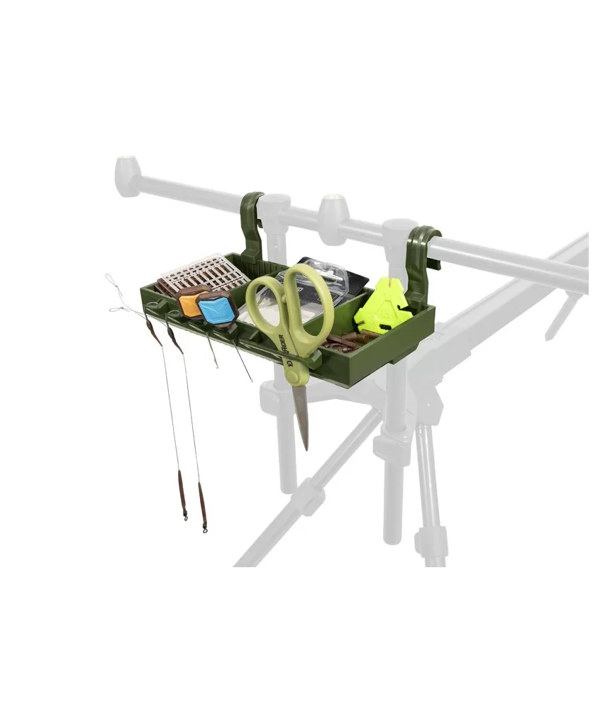 Delphin ShelfPOD – tai išskirtinio dizaino, praktiška lentynėlė, sukurta specialiai žvejams, naudojantiems rodpodus, trikojus ar individualius buzz barus su smeigtukais. Ji leis tvarkingai susidėti masalus, aksesuarus ar kitus smulkius reikmenis, kad viskas būtų greta, kai svarbiausia – prie jūsų užmestų meškerių.
