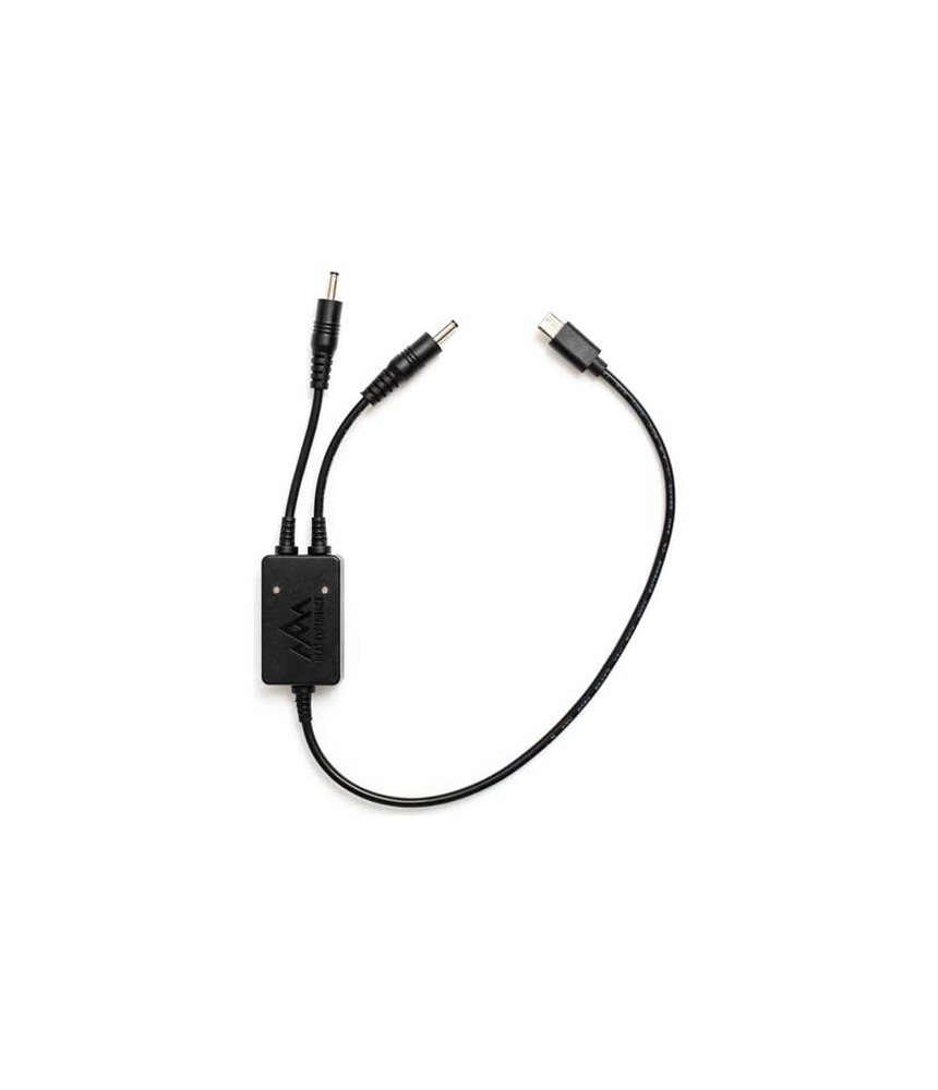 Įkrovimo kabelis, skirtas vienu metu įkrauti dvi pirštinių baterijas, su USB-C įvestimi ir 2 x 3,5 mm cilindrinės formos kištuku. Šiam įkrovimo kabeliui reikalingas adapteris, kuris tiekia ne mažiau kaip 5 V/3 A srovę.